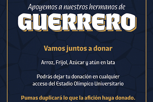Un llamado al que atendió Pumas, que para el compromiso de la Jornada 16 de la Liga MX ante Atlas lanzó una campaña en redes sociales para recaudar víveres para las zonas afectadas.