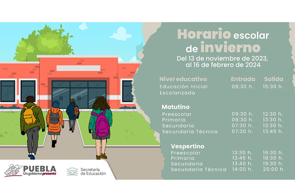 Próximo lunes inicia horario de invierno en escuelas de Puebla