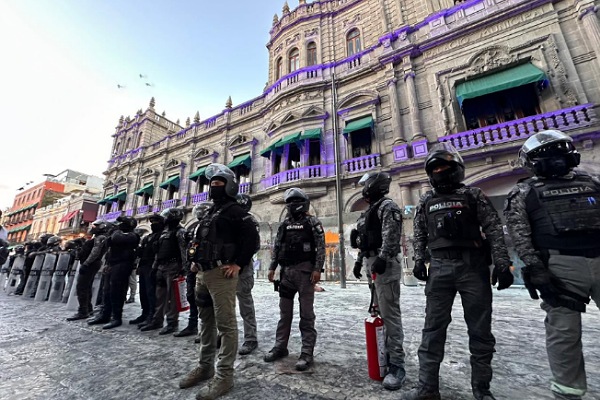 Agresiones con gas lacrimógeno y agua contra manifestantes del 8M en Puebla