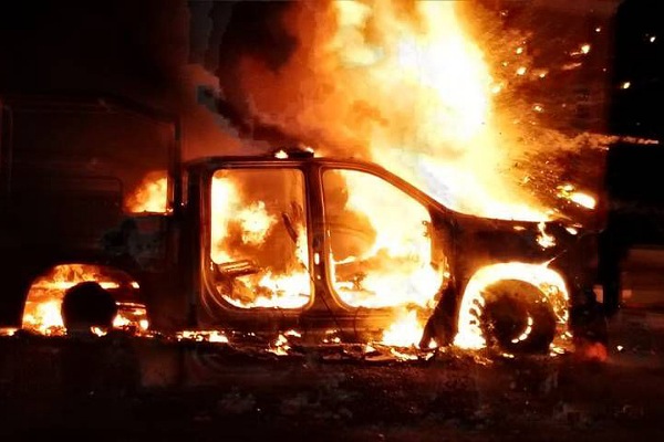 Normalistas retienen a elementos y queman patrullas de la Guardia Nacional