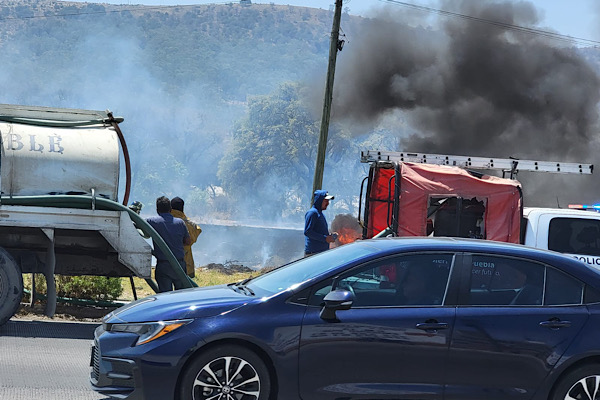 Incendio en un lote de llantas genera alarma entre la población de Amozoc