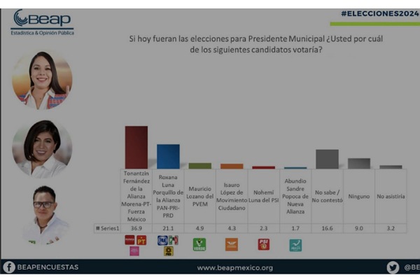 BEAP da ventaja a Tonantzin Fernández de más de 15 puntos sobre Roxana Luna