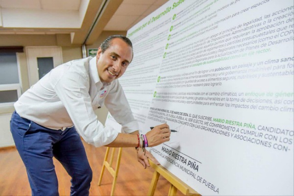 El candidato a la Presidencia Municipal de Puebla, por el PAN, PRI, PRD y PSI, Mario Riestra, firmó un compromiso por el Desarrollo Sustentable y la Acción Climática en colaboración con el ICLEI, Gobiernos Locales por la Sustentabilidad.Este documento detalla los siguientes puntos, en los que se compromete a cumplir como alcalde: 1. Adopción del […]