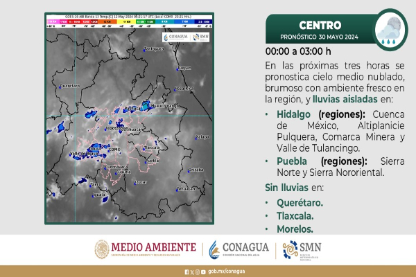 En gran parte del territorio nacional continuará el calor y lluvias este jueves 30 de mayo. De acuerdo con el Servicio Meteorológico Nacional (SMN), debido a la tercera onda de calor, durante la tarde del jueves, las temperaturas máximas serán superiores a 45 grados Celsius en Campeche, Chiapas, Guerrero, Michoacán, Morelos, Nuevo León, Oaxaca, San Luis Potosí, […]