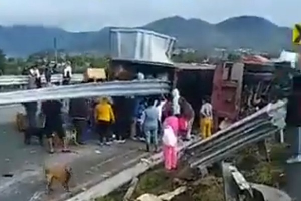Tráiler con electrodomésticos vuelca en el Edomex; conductor muere y pobladores hacen rapiña