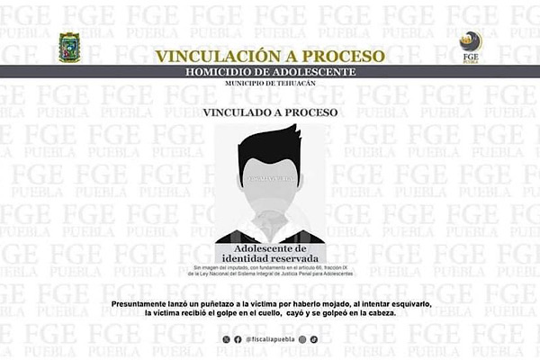 Redacción/Itinerario Poblano La Fiscalía General del Estado (FGE) vinculó a proceso de un adolescente, quien está investigado por el homicidio del estudiante Fernando Sebastian N. Fernando Sebastián, alumno de la Telesecundaria Manuel Mier y Terán en Tehuacán, falleció por traumatismo craneoencefálico, hemorragia cerebral y traumatismo de la columna vertebral ocasionada por recibir un golpe en la […]
