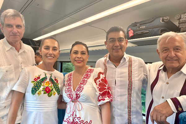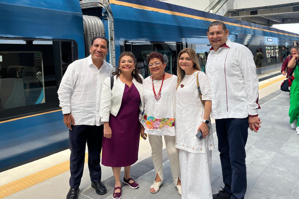Sergio Salomón acompaña a López Obrador y Sheinbaum en recorrido por el Tren Maya