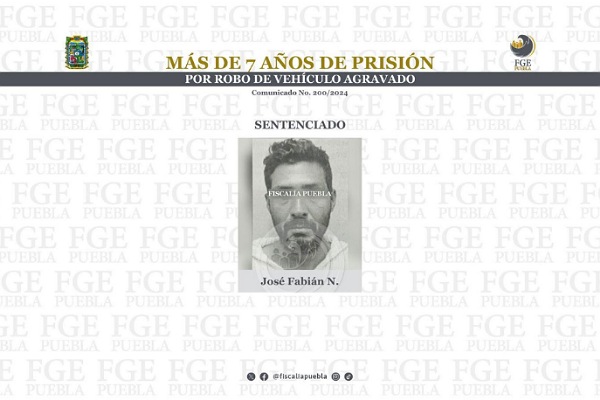 La Fiscalía General del Estado de Puebla obtuvo sentencia condenatoria contra José Fabián N., penalmente responsable del delito de robo de vehículo agravado. A través de actos de investigación se estableció que el 24 de marzo de 2023, dos hombres se encontraban desempeñando su trabajo como repartidores de cerveza, a bordo del vehículo Nissan NP300 […]