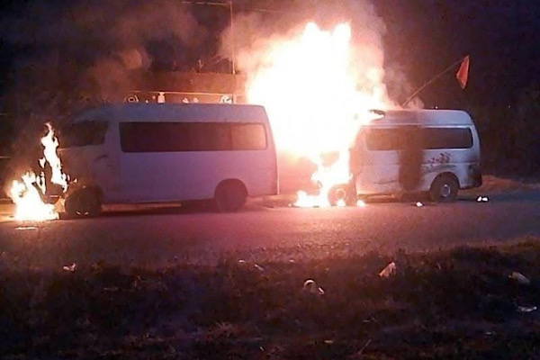Conflicto entre concesionarios y choferes en Ocoyucan termina con cuatro unidades incendiadas