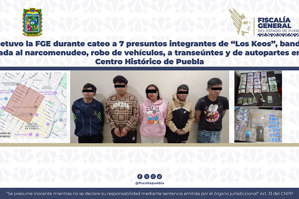 La Fiscalía General del Estado de Puebla informa que, como resultado de labores de investigación, inteligencia y trabajo de campo, se ejecutó una orden de cateo en un inmueble ubicado en la colonia Centro de la ciudad de Puebla, lo que derivó en la detención de siete presuntos integrantes de un grupo delictivo identificado como […]