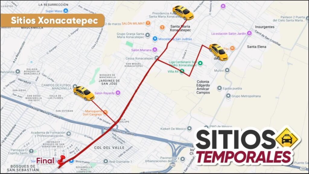 Los taxis operan en zonas como Periférico Ecológico, 14 Sur, Plaza Ventura, Plaza San Diego, Balcones del Sur, Vía San Sebastián y Angelópolis.