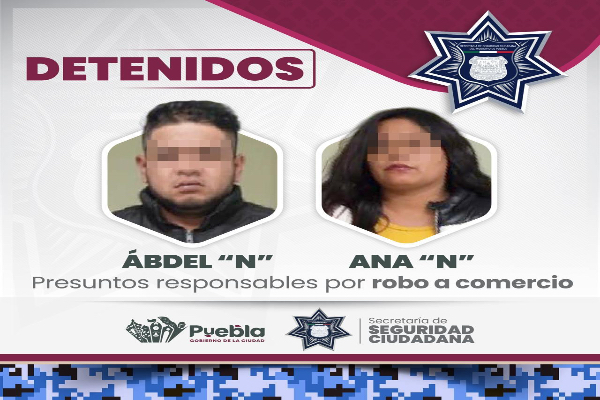 Detiene SSC a una pareja por presunto delito de robo a negocio con violencia