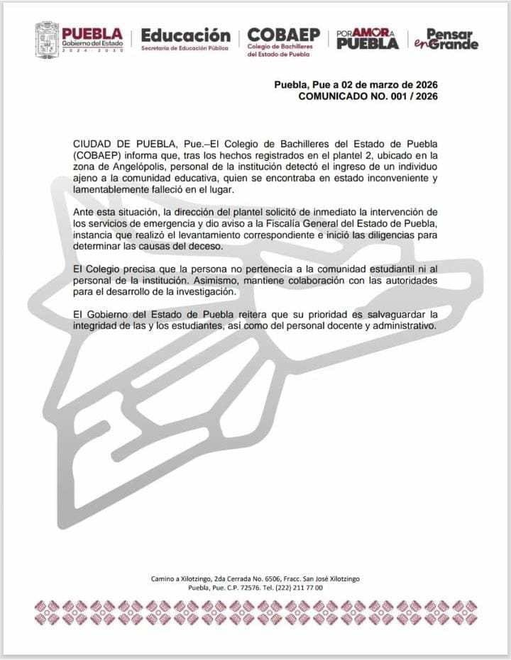 Un hombre fue encontrado este martes al interior del plantel Cobaep U-2, ubicado en la zona de Angelópolis, en la ciudad de Puebla.