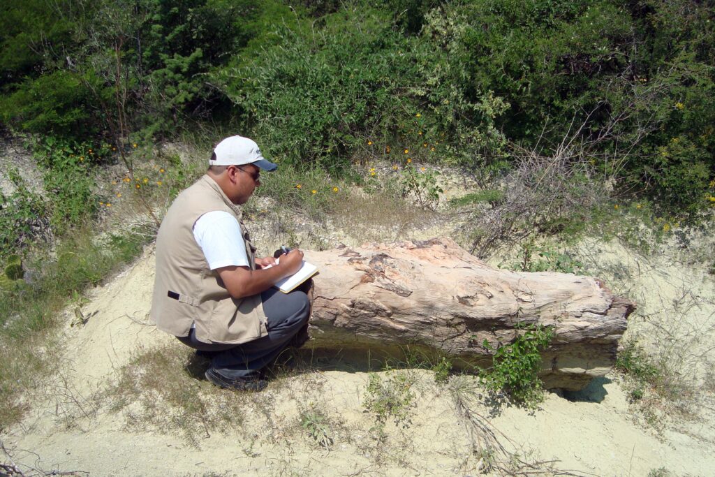 Asimismo, trabajan fósiles de la región de San Esteban Tizatlán, donde por medio de la identificación de hojas determinan las especies presentes e investigan el tipo de climas que existían en el pasado; es decir, hacen una reconstrucción paleoclimática. También, cerca de Tizatlán, en la localidad de Panotla, el doctor Castañeda y sus estudiantes analizan la anatomía de maderas fósiles, para identificar la especie y conocer los climas que existieron en esa región.